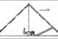 Думается, ответ на этот вопрос можно найти с помощью геометрии. Я обратил внимание на то обстоятельство, что обе дахшурские пирамиды имеют одну и ту же высоту — 105 м, и один окончательный угол наклона в своей верхней части — около 43°, точнее 43°22?. Это не могло быть случайным совпадением. Те, кто знает геометрию пирамид, поймут, что угол в 43°22? — один их двух значимых углов, имеющих отношение к функции величины ?. Здесь применяется следующая формула: ? = N х S/(2 ?), где Н — высота пирамиды, a S — длина стороны у ее основания. N здесь представляет число, определяющее наклон пирамиды. Если принять эту величину за 4, то угол наклона пирамиды будет 51°50? (как в случае с Великой пирамидой). Если эта величина равна 3, то угол составит 43°22?, как в верхней части обеих пирамид Дахшура.